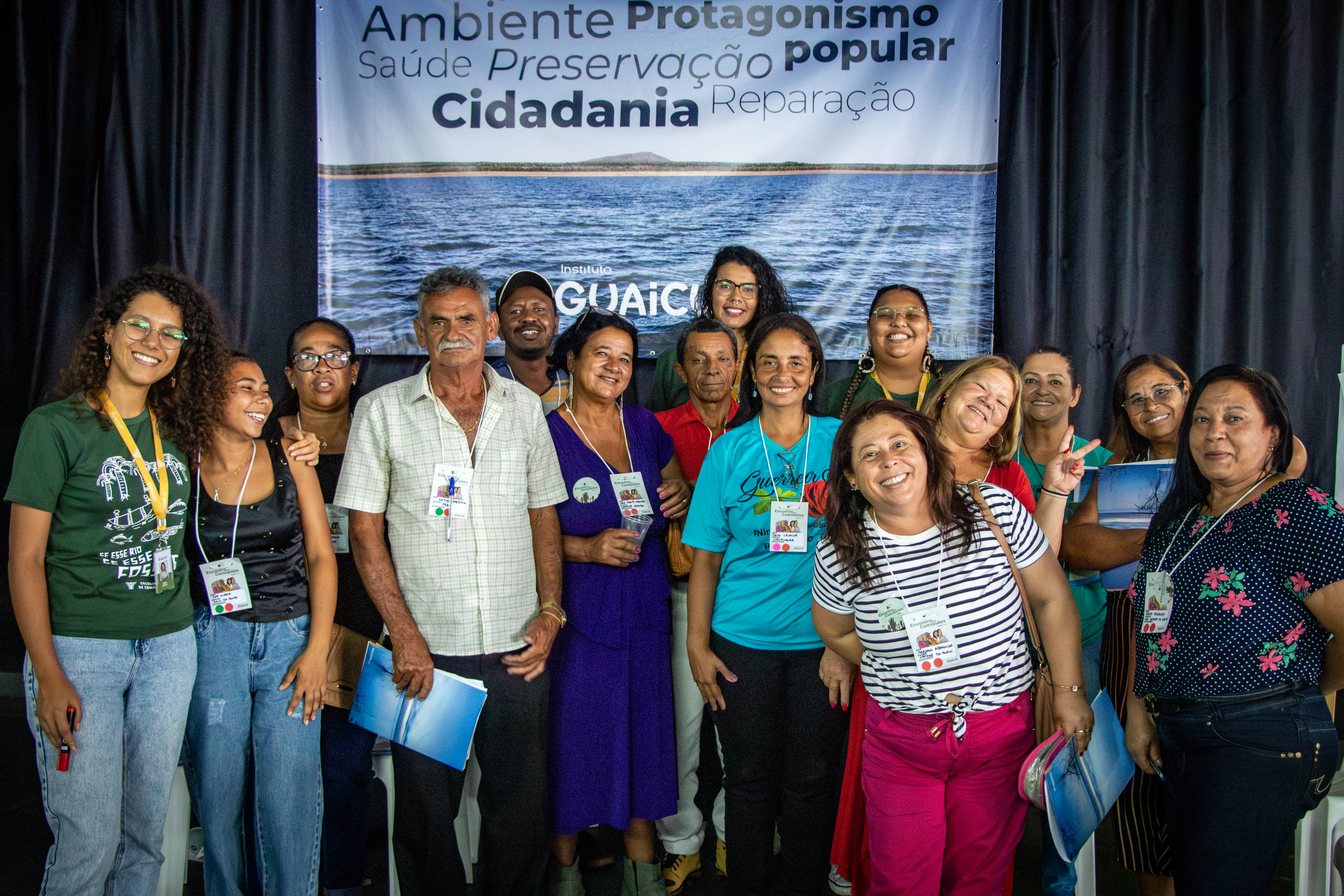 74 pessoas atingidas participaram do Encontro, representando 24 diferentes Comissões, entre elas comunidades de Povos e Comunidades Tradicionais (PCTs), a do Povo Indígena Kaxixó, o grupo Guiados Pelo Axé, de pessoas de religião de matriz africana, e ribeirinhos da calha do São Francisco. O evento teve início com a leitura de um poema sobre a luta pela reparação por Lubiana Pereira Bruno, da Comissão de Faveira, Buritizinho, Riachão e Ilha do Mangabal (FABURIMA). Em seguida, Paula Constante e Jonas Veloso, coordenadores do Guaicuy nas Regiões 5 Oeste e Leste, respectivamente, apresentaram a programação do evento, lembrando que ela foi construída em conjunto com as pessoas atingidas por meio da Secretaria Organizativa. “A Região 5 é uma só, é muito forte, e vai mostrar sua potência nesse Encontro”, disse Jonas Veloso.