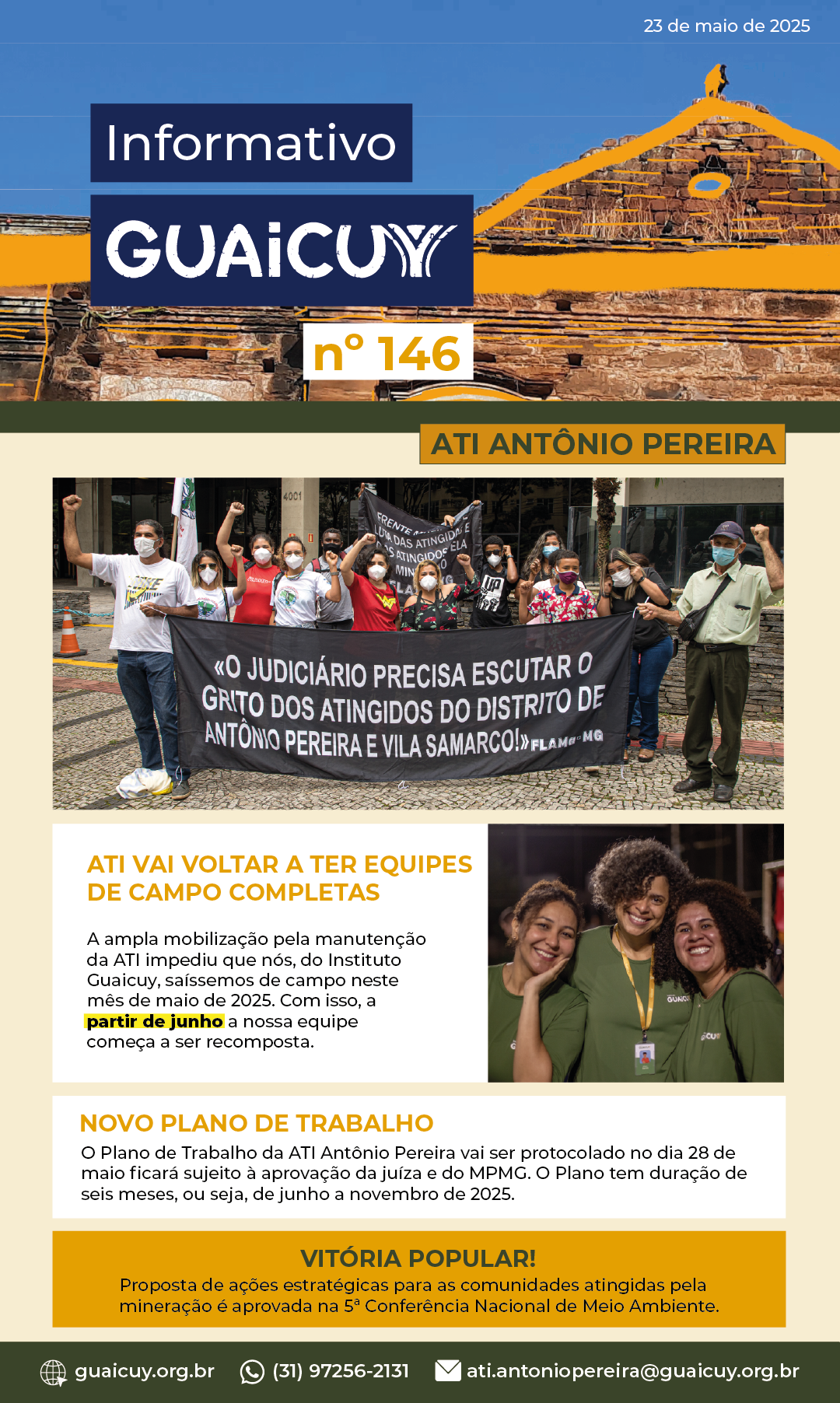 A ampla mobilização pela manutenção da ATI impediu que nós, do Instituto Guaicuy, saíssemos de campo neste mês de maio de 2025. Com isso, a partir de junho a nossa equipe começa a ser recomposta.