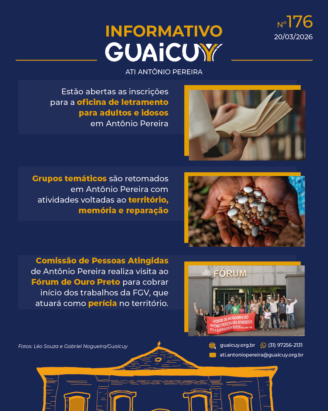 📲 Quer falar com sua Assessoria Técnica Independente? O telefone do Acolhimento Digital do Instituto Guaicuy é (31) 97256-2131. Você pode ligar, mandar uma mensagem pelo WhatsApp ou enviar um e-mail para  ati.antoniopereira@guaicuy.org.br.