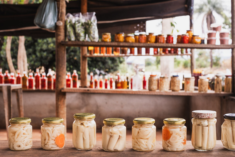 As frutas do Cerrado, com destaque para o pequi e para o articum (ou araticum), são catadas na região pelos próprios vendedores e expostas nas barracas. O bambu também é colhido por lá, e passa por um processamento artesanal antes de ser colocado em conserva e vendido em potes de vidro.