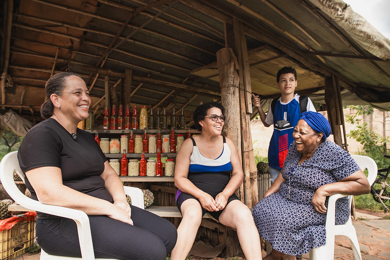 O assunto também emociona Irismei, Alexandra e Geralda. A matriarca lembra que seu marido, Israel, comprou o terreno em Angueretá por engano, achando que era em Pompéu. Desde que se estabeleceram lá, a venda de frutas na beira da rodovia uniu a família e possibilitou o sustento de todos. “Nossa, lembro do meu velhinho sentado ali junto comigo. A gente ficava ali os dois, eu de lá e ele de cá. O dia todo a gente só ficava junto nós dois aqui. Nós dois sempre trabalhamos juntos, sabe?”, comenta Geralda.