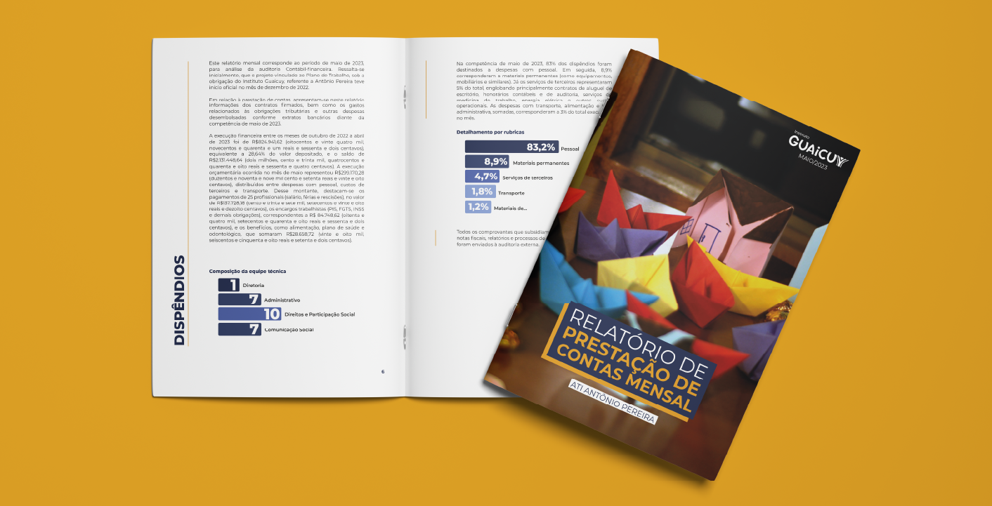 Em relação à prestação de contas, apresentam-se neste relatório informações dos contratos firmados, bem como os gastos relacionados às obrigações tributárias e outras despesas desembolsadas conforme extratos bancários diante da competência de maio de 2023.