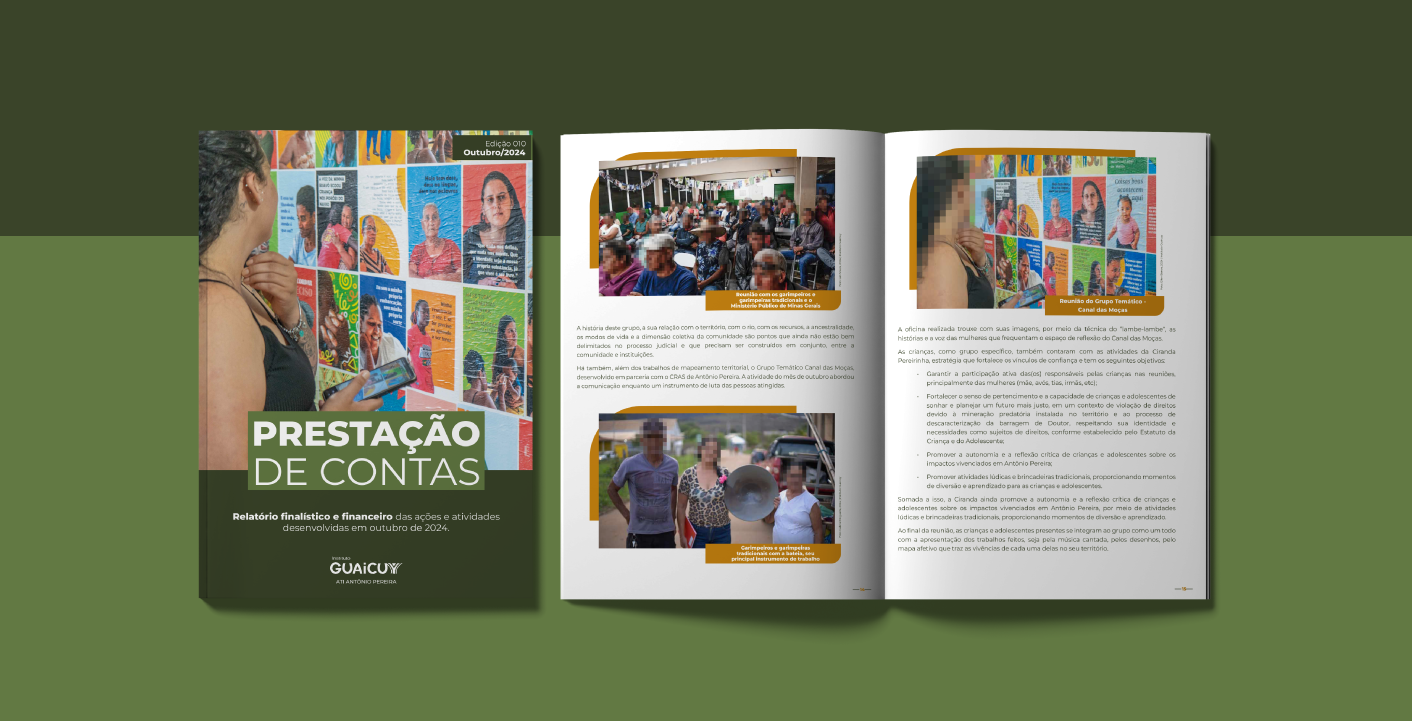 Nesse sentido, a presente prestação de contas elaborada cuida de expor o resultado dos esforços coletivos multidisciplinares, em vista do impacto contínuo que ocorre no território e, ainda, das necessidades de diálogo e construção junto às pessoas atingidas de Antônio Pereira com expectativa de contribuir de forma qualificada para a reparação integral.