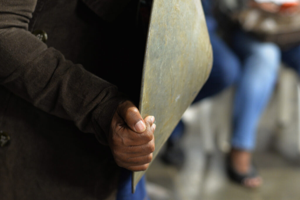 A luta por reconhecimento e por reparação integral também deu o tom às falas das garimpeiras e garimpeiros tradicionais presentes na audiência. “Nosso garimpo é tradicional, veio dos antigos. A Vale tomou nossa comunidade, estamos encurralados, não temos direito de ir e vir, de garimpar, a Vale manda a polícia nos prender sem um plano de reparação para os garimpeiros”, denuncia Dona Ivone Pereira Zacarias, vice-presidente da Associação dos Garimpeiros de Antônio Pereira.