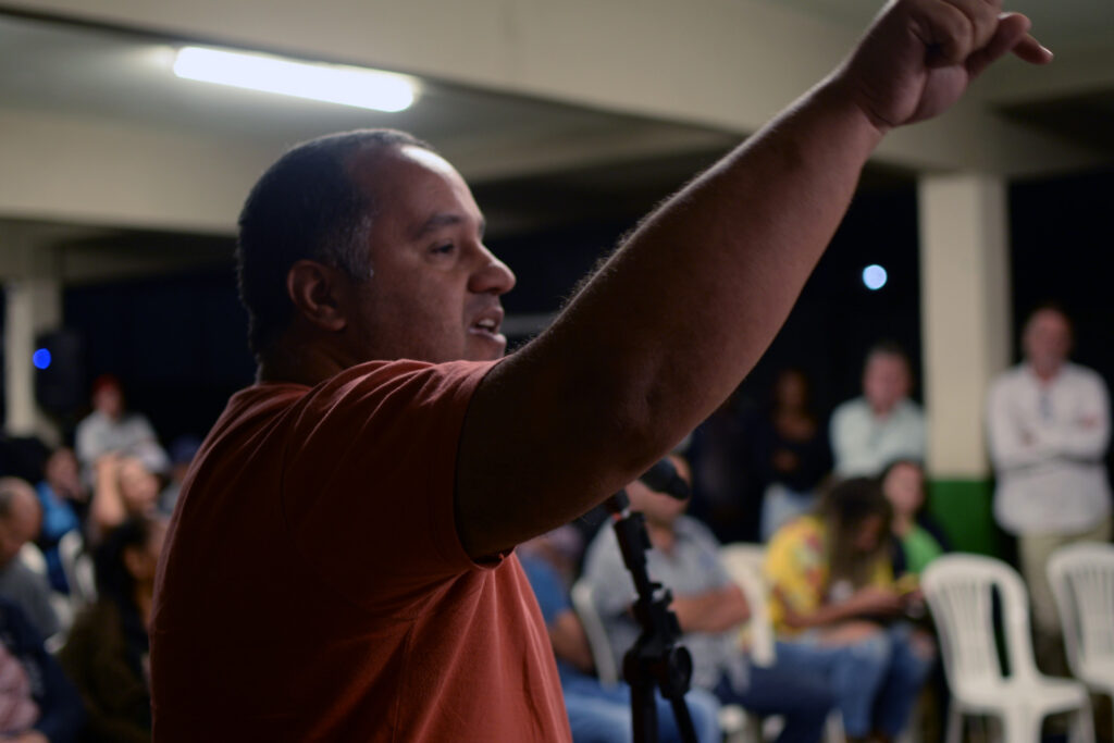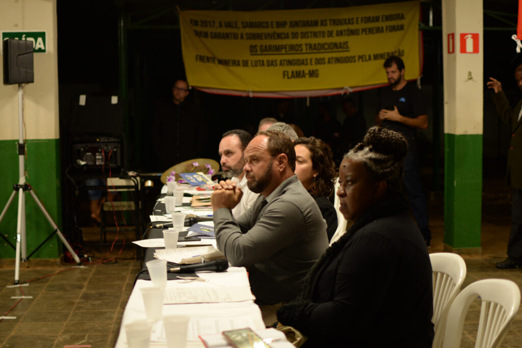 Onofre Carmo, garimpeiro tradicional de Antônio Pereira, nomeia as empresas e a fundação que têm gerado diversos danos à comunidade. “Aqui nós viemos falar sobre o garimpo tradicional, nós trabalhamos e lutamos num Antônio Pereira que foi isolado. A Vale, a Samarco, a BHP e a Renova não querem saber das pessoas, das vidas que desceram pela lama e das famílias que vivem no sofrimento”.